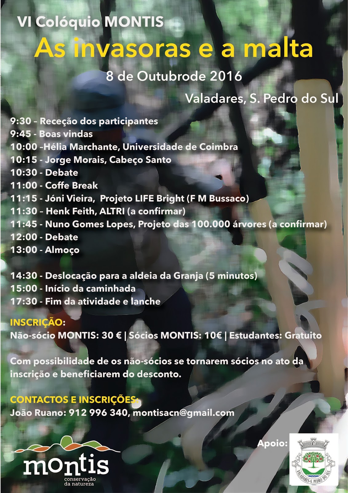 Durante a manhã serão apresentados vários projetos que a malta tem feito a nível nacional e durante a tarde faremos um passeio pelo baldio da Granja gerido pela Montis. Aí haverá oportunidade de por as mãos à obra e executar algumas técnicas demonstrativas de combate a espécies invasoras.