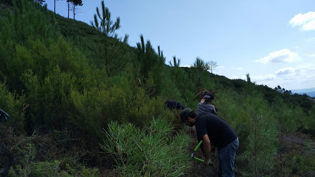 De manhã, o grupo esteve junto a um núcleo de pinheiros a fazer corte dos matos envolventes e a podar alguns dos pinheiros.