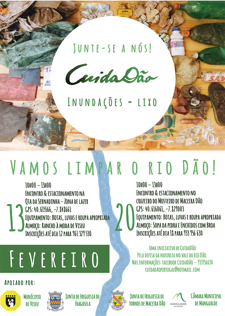 Temos um  voluntariado importante no mesmo dia, de preparação do terreno para as oficinas de engenharia natural, mas mesmo assim apoiamos esta iniciativa de limpeza do rio Dão, divulgando o evento.