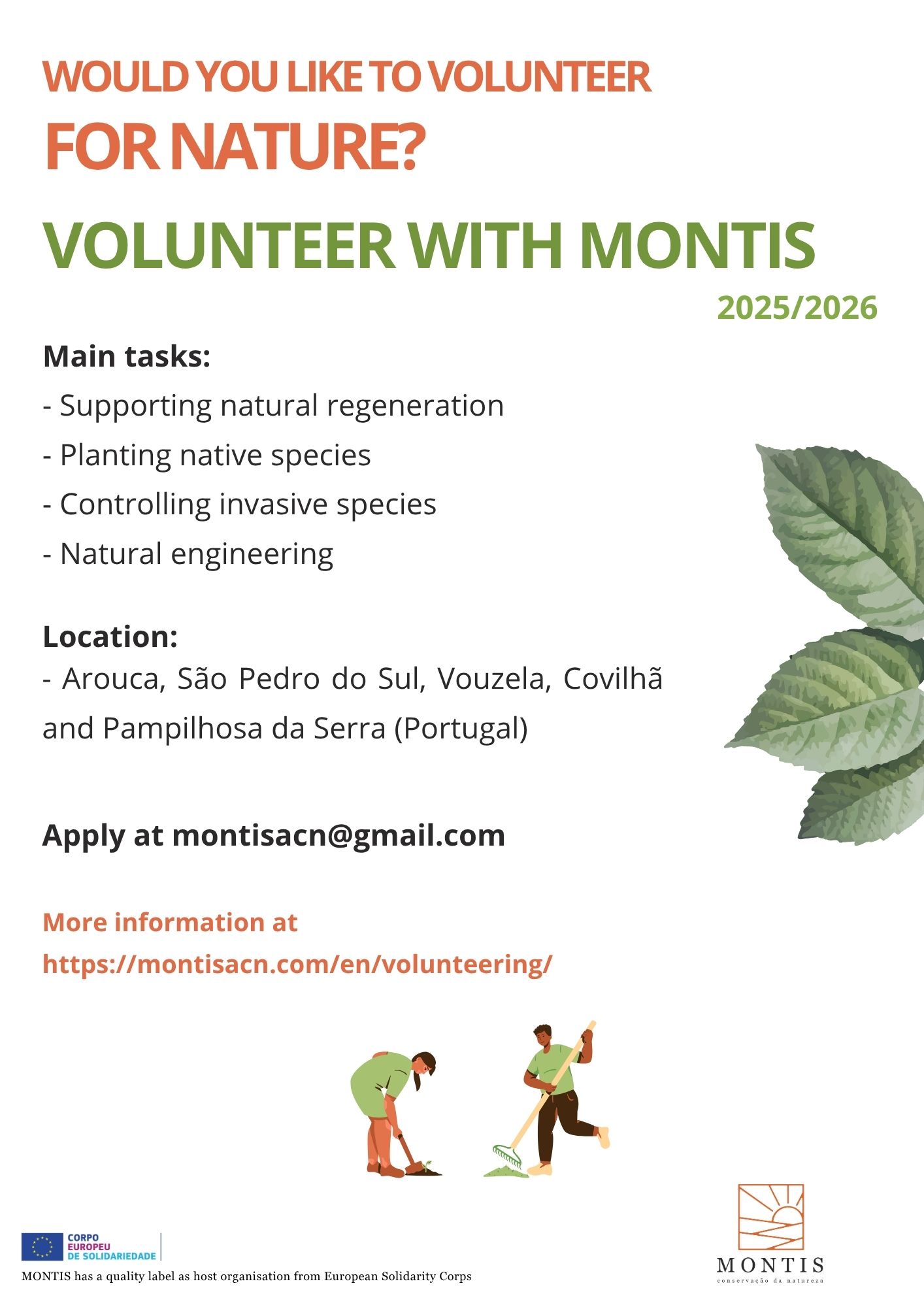 Volunteering Individual volunteering Join us as a volunteer, participate in our activities, giving nature a hand. Sign up HERE Long term volunteering Be part of the change! Volunteer with MONTIS! Volunteering with MONTIS Infopack