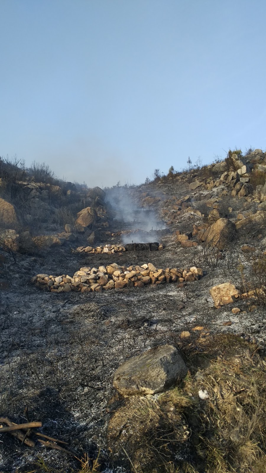 Claro que teríamos preferido fazer primeiro o fogo e depois a primeira oficina de engenharia natural, mas não foi possível e vamos agora avaliar em que medida o trabalho feito ainda mantém alguma funcionalidade, acabando por fazer uma maior retenção de cinzas e nutrientes, embora se espere uma baixa erosão, com as condições meteorológicas que hoje podemos prever (dois dias de chuva fraca na semana que vem).