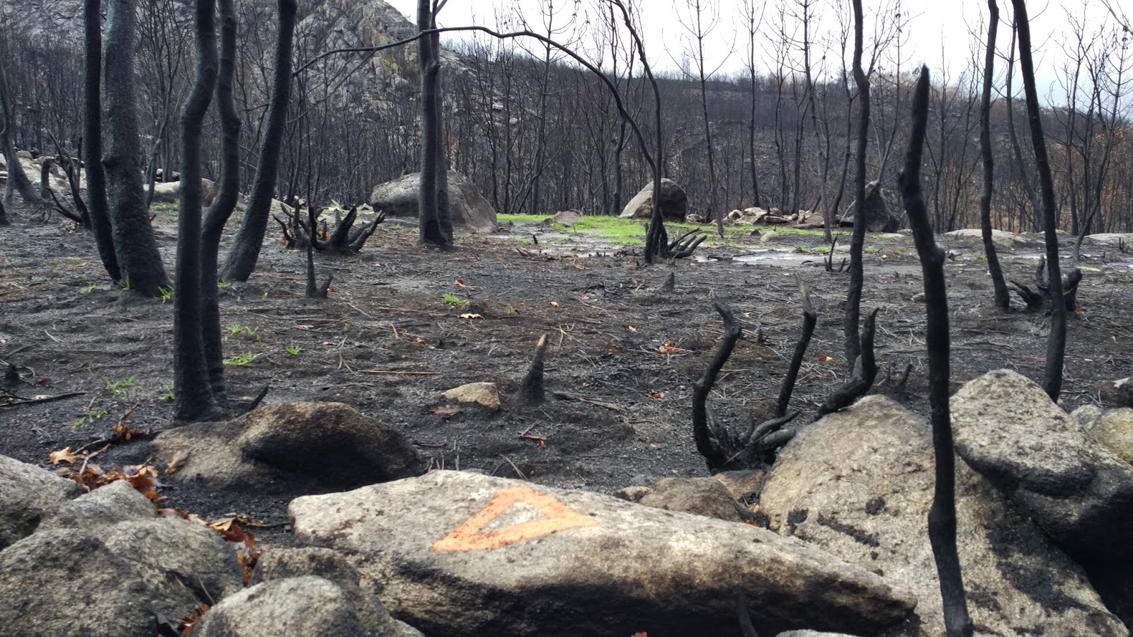 As redondezas das propriedades mostraram imediatamente o contraste entre o verde dos lameiros e o preto de áreas ainda sem grande recuperação.