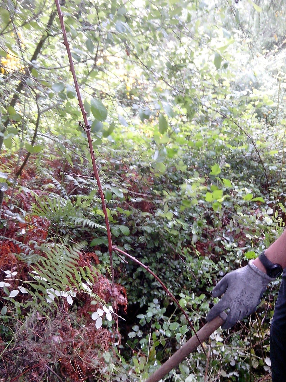 Perto de uma linha de água, iniciámos a abertura de um caminho antigo que permitirá aceder a uma considerável área plana situada no interior da propriedade e simultaneamente reabilitar caminhos que pela sua falta de uso, hoje encontram-se escondidos no interior da vegetação.