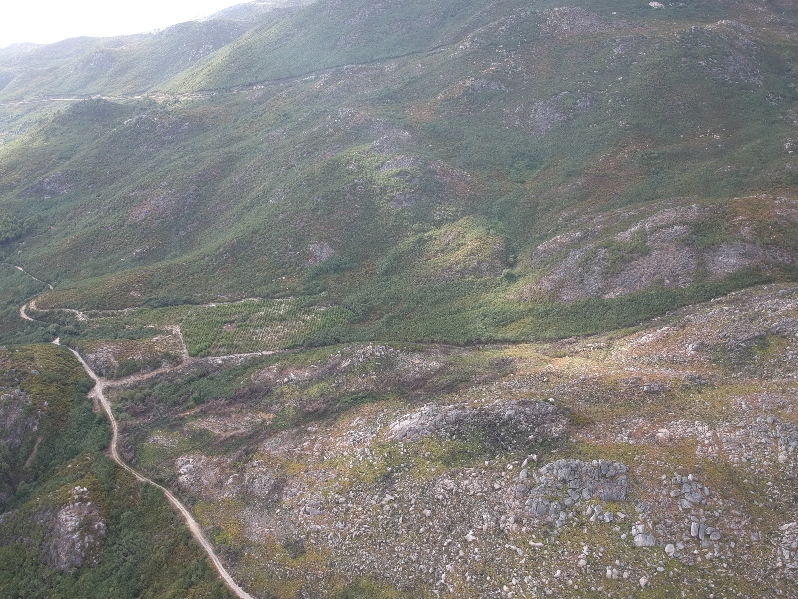 Tal como a fotografia do post, as imagens são colhidas por um drone (ainda se está em aprendizagem no uso desse instrumento) para documentar a área de fogo controlado que fizemos em Fevereiro deste ano, criando uma oportunidade de gestão para aumentar a velocidade de recuperação dos sistemas naturais a que estamos, neste momento, a dar prioridade: a recuperação das matas das linhas de água e criação de bosquetes dominados por carvalhos, que convivam serenamente com a inevitável presença do fogo.